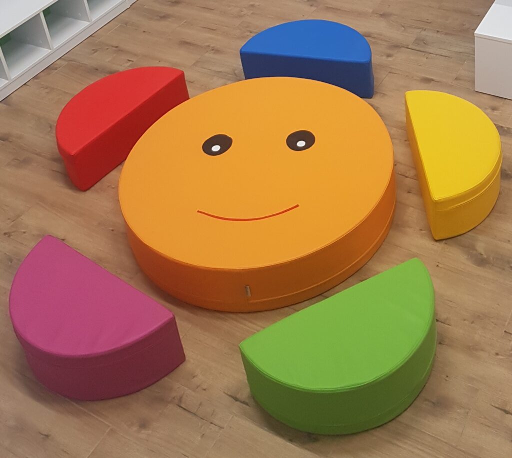 Szatnia w Przedszkolu High Five 🙂 Stawiamy na przestronność, wygodę i oryginalność. Przedstawiamy fragment szatni. Więcej zobaczycie na miejscu. 🙂 Każde dziecko będzie mieć swoją szafeczkę z naklejką. Przebierać się może na swoim siedzeniu lub na naszym kolorowym kwiatku.